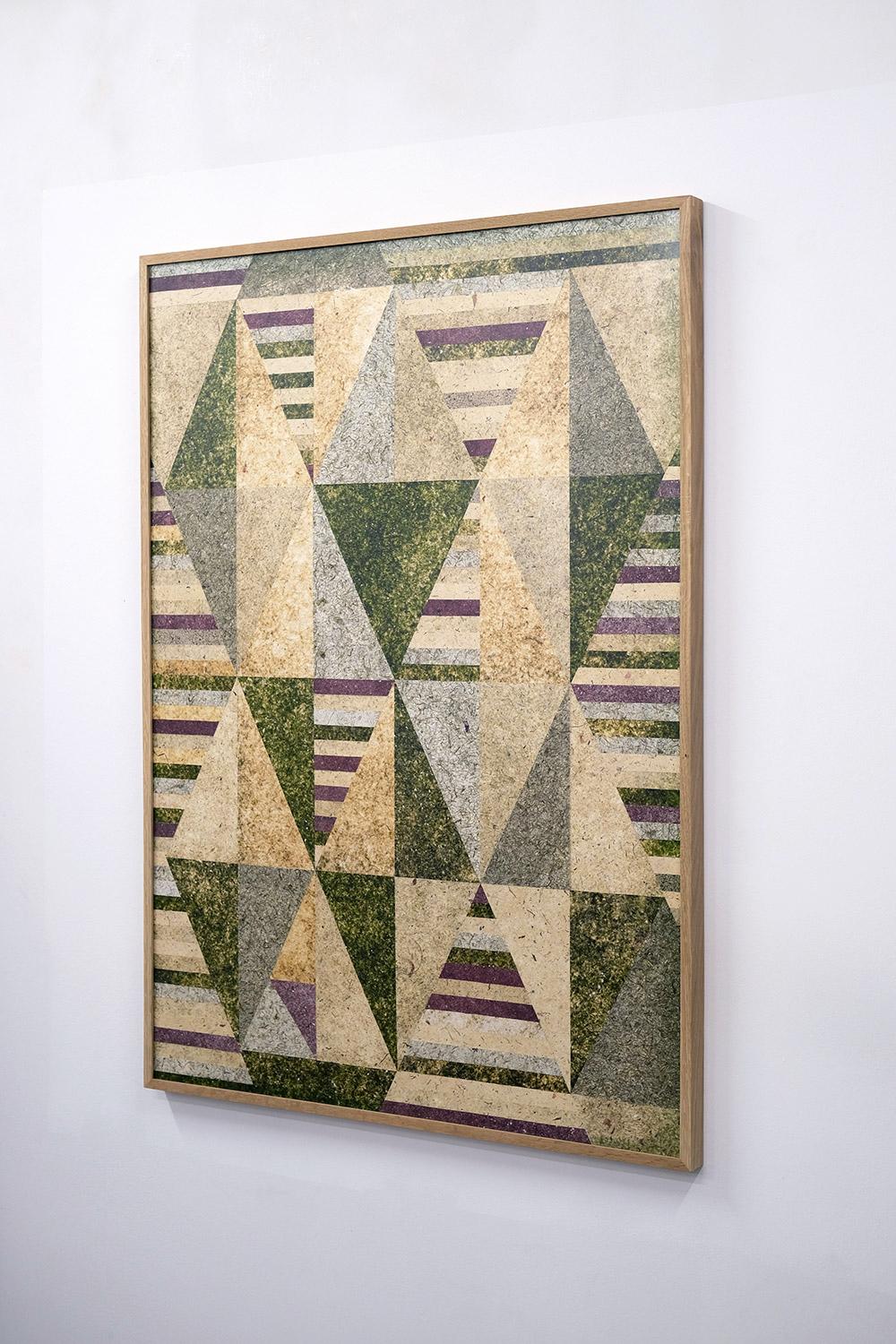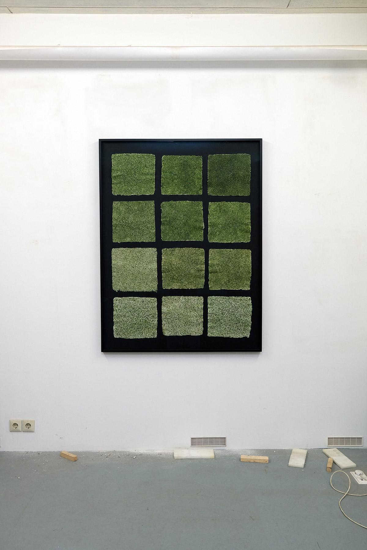 The same thing can be observed in Ulva-based algae paper sheets, which contain green pigments such as chlorophyll. These are essential for photosynthesis, the process by which algae produce energy from light. Over time, the chlorophyll will undergo photochemical degradation and the algae will turn white. This is what consistently happens to most of my works made from seaweed paper. They're ephemeral, degrading over time, and that's fine. It seems to me that art is more a process than a fixed product, and we have to accept that its forms are not eternal. This is especially true with work produced from natural materials like algae, mycelium, vegetable dyes, and so on.