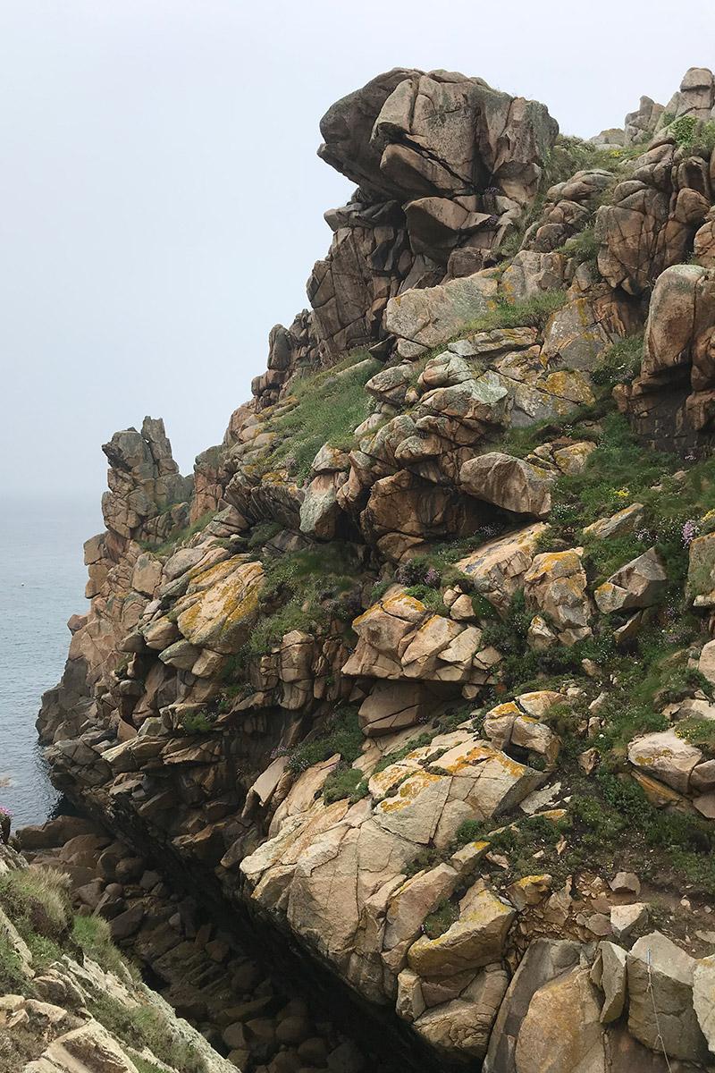 Arriving at the large rocks that form a barrier along the coastline, the diver finally straightens up. There, he notices algae clinging to the reef. There are several species, and their arrangement reminds him of a drawing he saw in the Florule du Finistère by the Crouan brothers while consulting the historical algae books in the library of the Roscoff Biological Station.