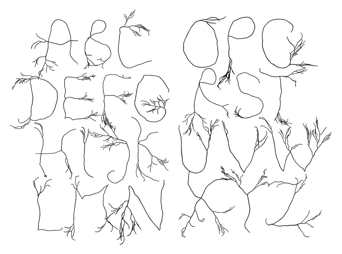 He wanted to capture all these disparate thoughts in the few knotted algae that he simply placed on a white sheet of paper. He wanted to articulate a system of autonomous signs that would recreate a link between humans and nature. So, discreetly, he tried to give shape to this idea, observing the seaweed underwater as he would have observed the characters in a printer's type case. He drew, corrected, shared his thoughts, drew again, and the concept of the alphabet of life was born: his Algalphabet.