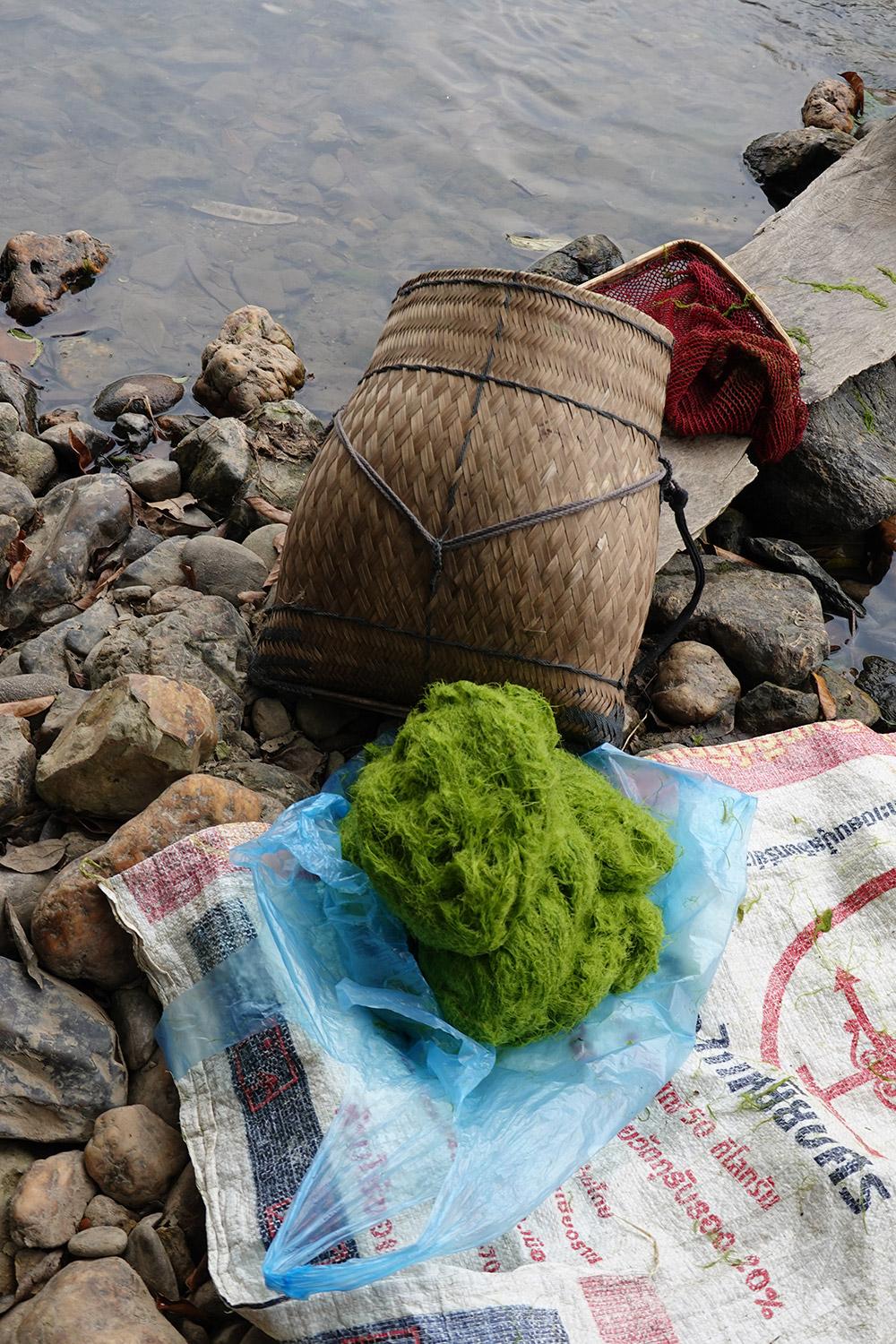 Meanwhile, he finds himself lost in the Laotian countryside on roads that wind between karst mountains, isolated villages, and lush green streams. When he sees one of these streams, he stops to check if there are any men or women busy collecting riverweed. He knows it’s been in bloom for a few weeks now, and he’s hoping for a clue that might lead him to some local producers. Several times he stops to interview people on the side of the road. He communicates by waving his hands, pointing to the river, and then mimicking someone putting food into his mouth. The villagers look at each other in amusement. They don’t understand what he’s trying to tell them.