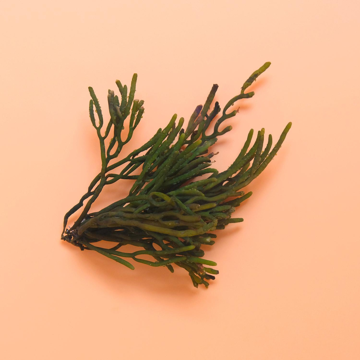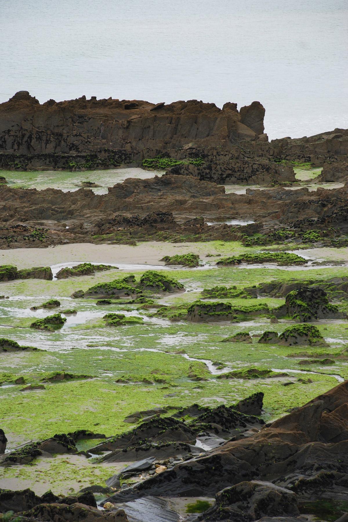 JV - Ascophyllum, or black seaweed, is very common in Brittany. It can be found on almost every rock at low tide. More prosaically, it is also the seaweed found in oyster baskets or on fishmongers' stalls for decorative purposes. It is said to contain high levels of alginate, a natural gelling agent that is highly valued in the food and pharmaceutical industries. I took a lot of photos of it because I found its olive green color very beautiful. Its fairly fluid, tapered shape makes it particularly attractive and inviting to touch.