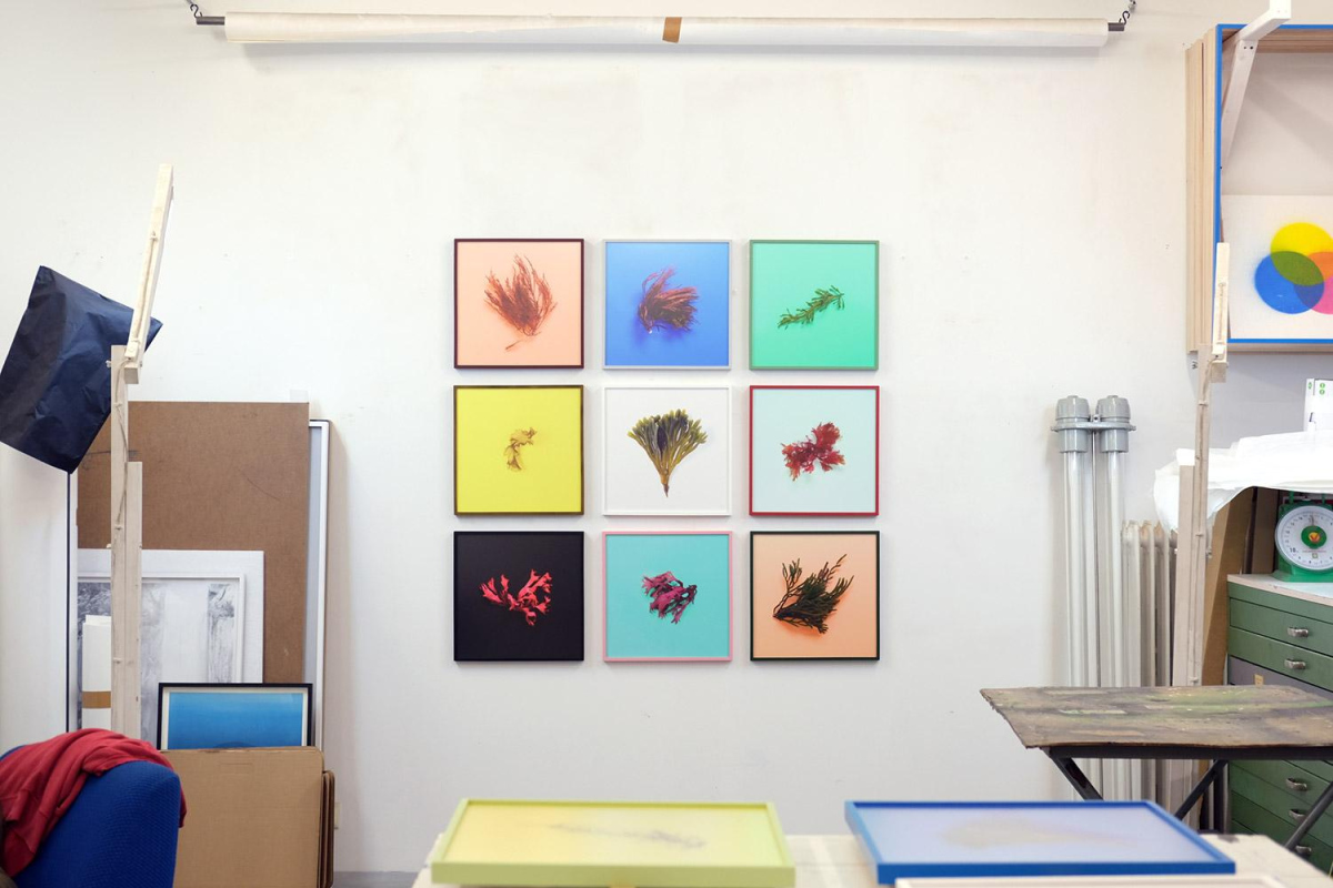 Back in Berlin, I printed and framed these photographs, and the whole thing became a standalone work, a portrait gallery presenting the algae, alone or in combination, and allowing the morphological characteristics of each species to be understood: for example, you can clearly see the thinness of the membrane of Ulva and Porphyra, which makes them suitable for paper production, or the small swollen pockets on the blades of Ascophyllum, which allow it to float on the surface of the water to capture more light. You can look at these images with the eye of a scientist or an art lover. I consider the Photochromatics series to be a tribute to the work of the eminent botanists who undertook to create the first algae books more than a century and a half ago, such as William Henry Harvey in England and the Crouan brothers in the Brest region. Their works, produced by hand in only a few dozen copies in some cases, are jewels of technical innovation for preserving and archiving algae, and are also a historical testimony to the encounter, unusual at the time, between art and science.