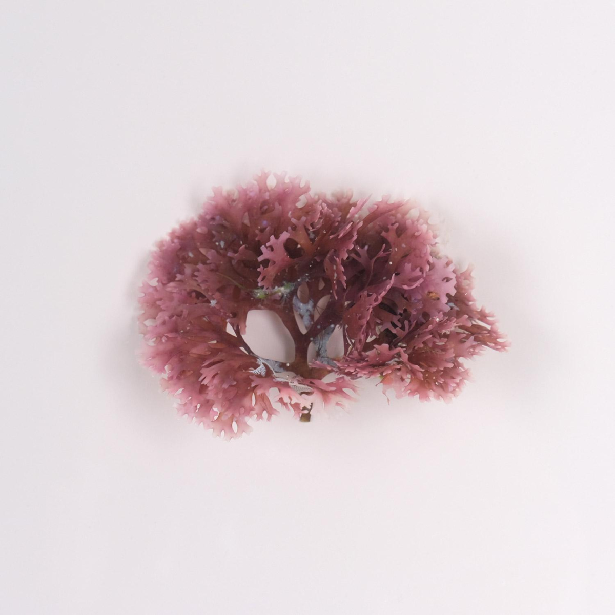 JV - I love the bright pink color of this tiny, delicate algae, which we sometimes gather by the handful on the foreshore at Locquirec. I have managed to produce beautiful red and pink leaves from this algae, which is ideal for making paper pulp. It is native to the southern seas and is thought to have migrated to Brittany on the holds of merchant ships, like many other species before it.