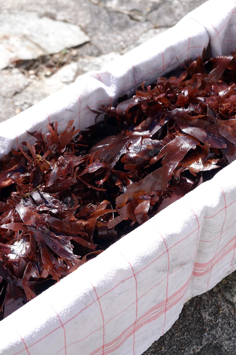 JV - I was initially surprised to find it directly on the beach at low tide, clinging to rocks. In my imagination, nori was this seaweed from the other side of the world used to make maki in Japanese cuisine. It is a red seaweed, but it turns brown when picked. I quickly tried to make paper out of it because it is thin and easy to mix, a bit like its cousin, sea lettuce. However, the result was less convincing than with green seaweed, and I had more trouble drying the sheets properly. Nevertheless, I used it to make masks and also dried large quantities, which I then gave to friends to cook with. It has a very pronounced umami flavor that is loved by gourmets and fans of Asian cuisine.